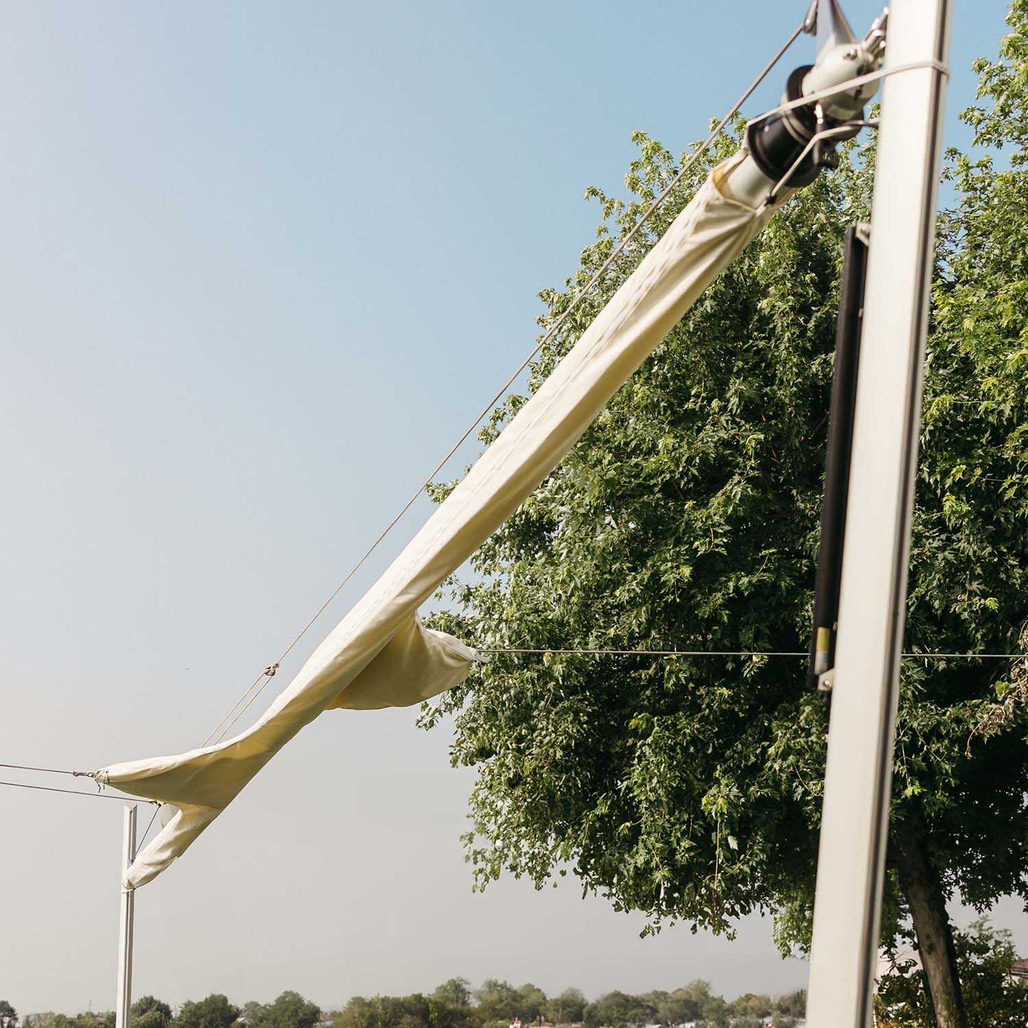 La copertura per vela motorizzata è l'accessorio essenziale per Zefira, progettata per custodire la vela quando resta avvolta sul rullo durante i mesi di non utilizzo.
