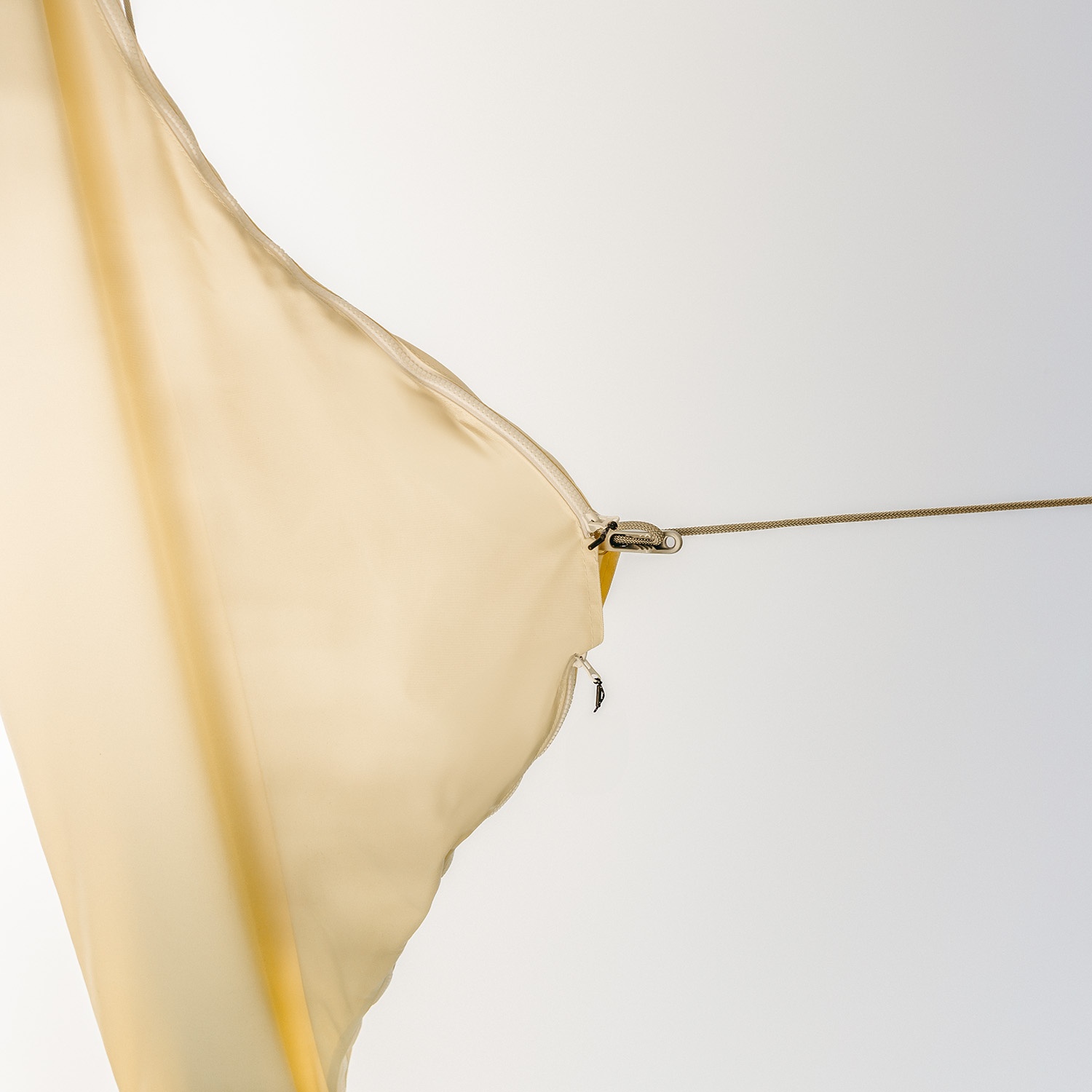 L'installazione della copertura anti-UV per la tenda esterna Zefira richiede meno di 60 secondi e non necessita di attrezzi o competenze tecniche.
