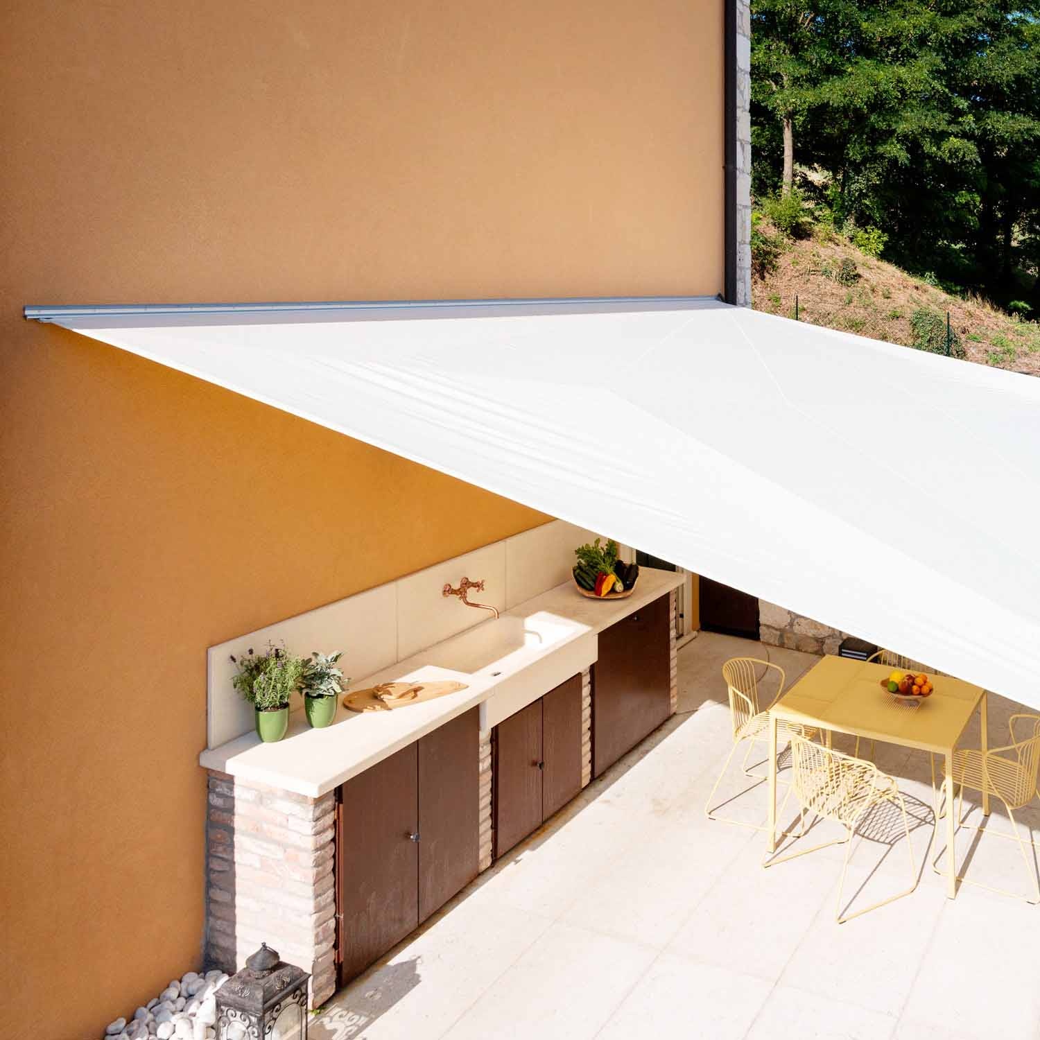 Dall’esigenza di addossare un lato della vela al muro di casa, nasce Solaria Lean.