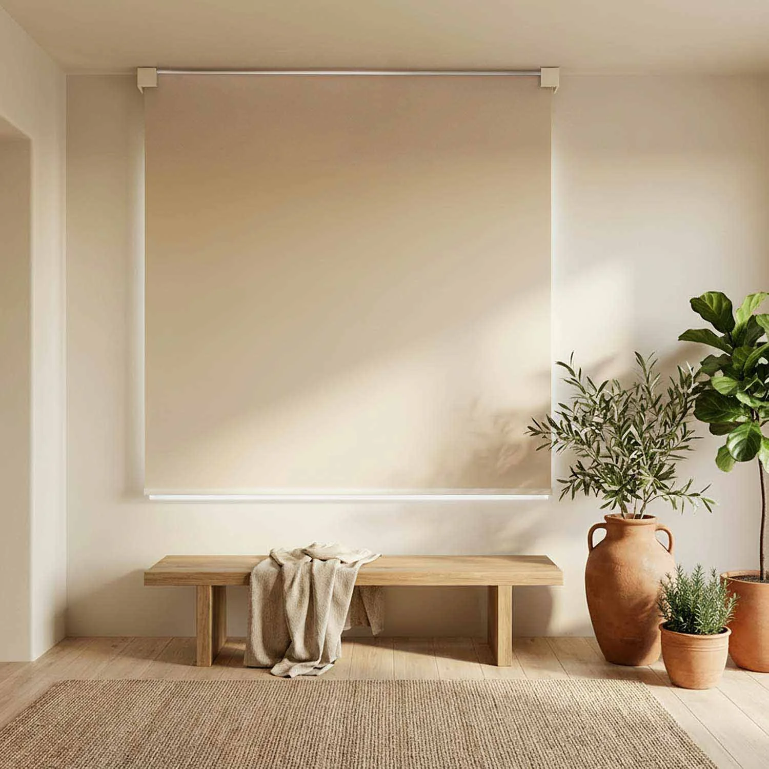 I tessuti delle tende a rullo da interno non si scelgono per il colore: si scelgono per quanta luce vuoi fare entrare. La stessa stanza, con lo stesso arredo, cambia completamente a seconda del tessuto.