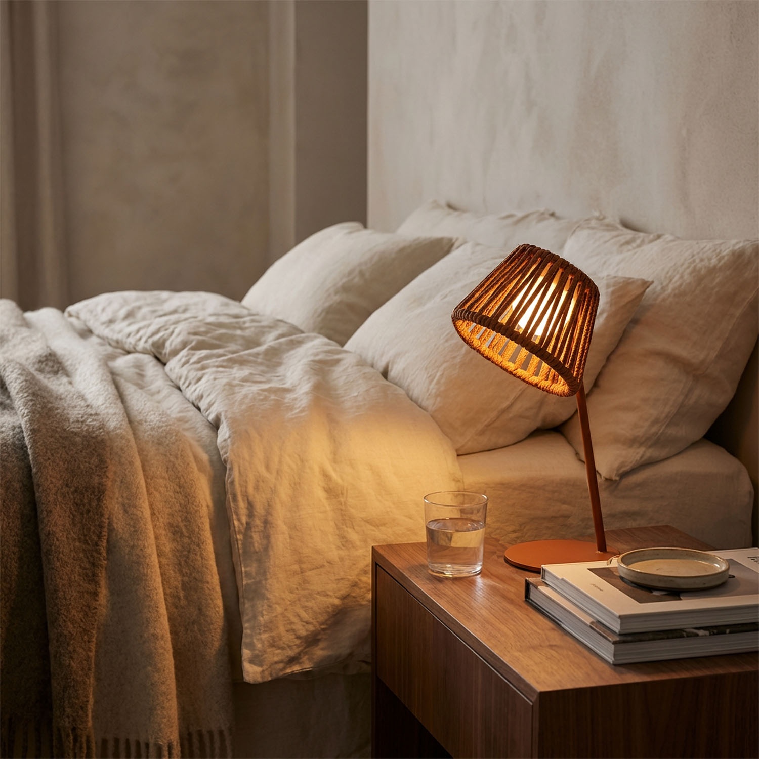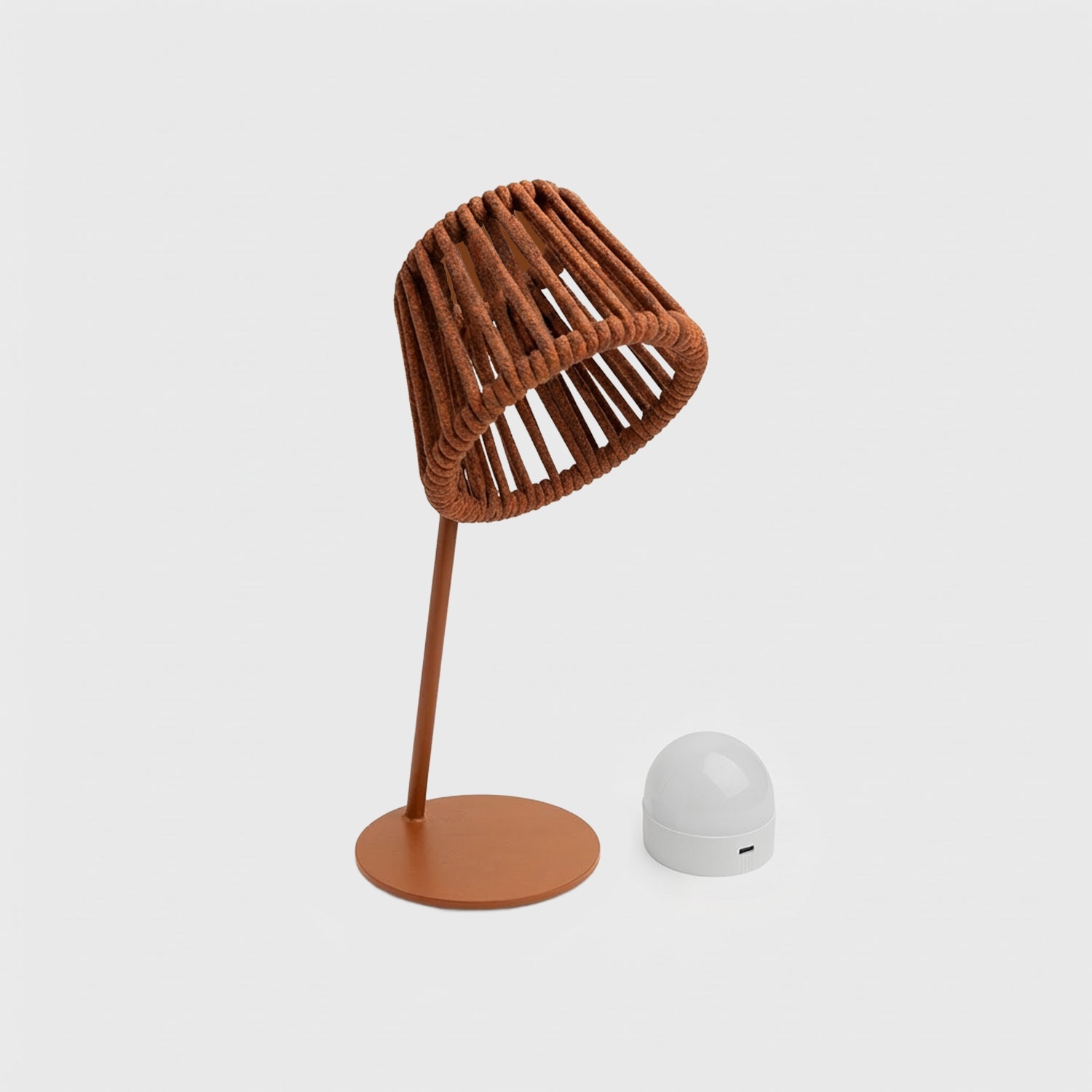 Mini Ropelle è una lampada da tavolo ricaricabile senza fili, progettata dall'ufficio stile Maanta. Appartiene alla famiglia Rope: stessa corda olefin outdoor, stesso linguaggio di design della Ropelle da pavimento, in formato compatto da 13×31,5 cm. Il suo punto distintivo è il bulbo Mag, che si stacca dalla lampada per essere ricaricato separatamente via USB-C.