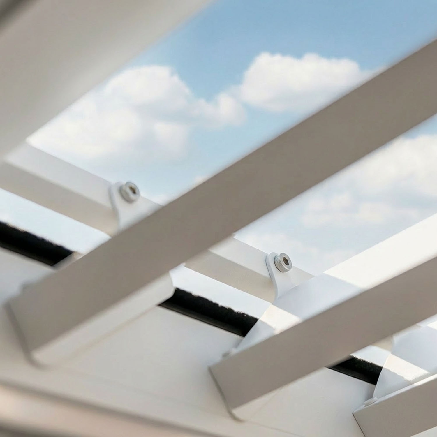 Lyra T6 è una pergola bioclimatica con lamelle orientabili da 0° a 100°, ferme in qualsiasi posizione.