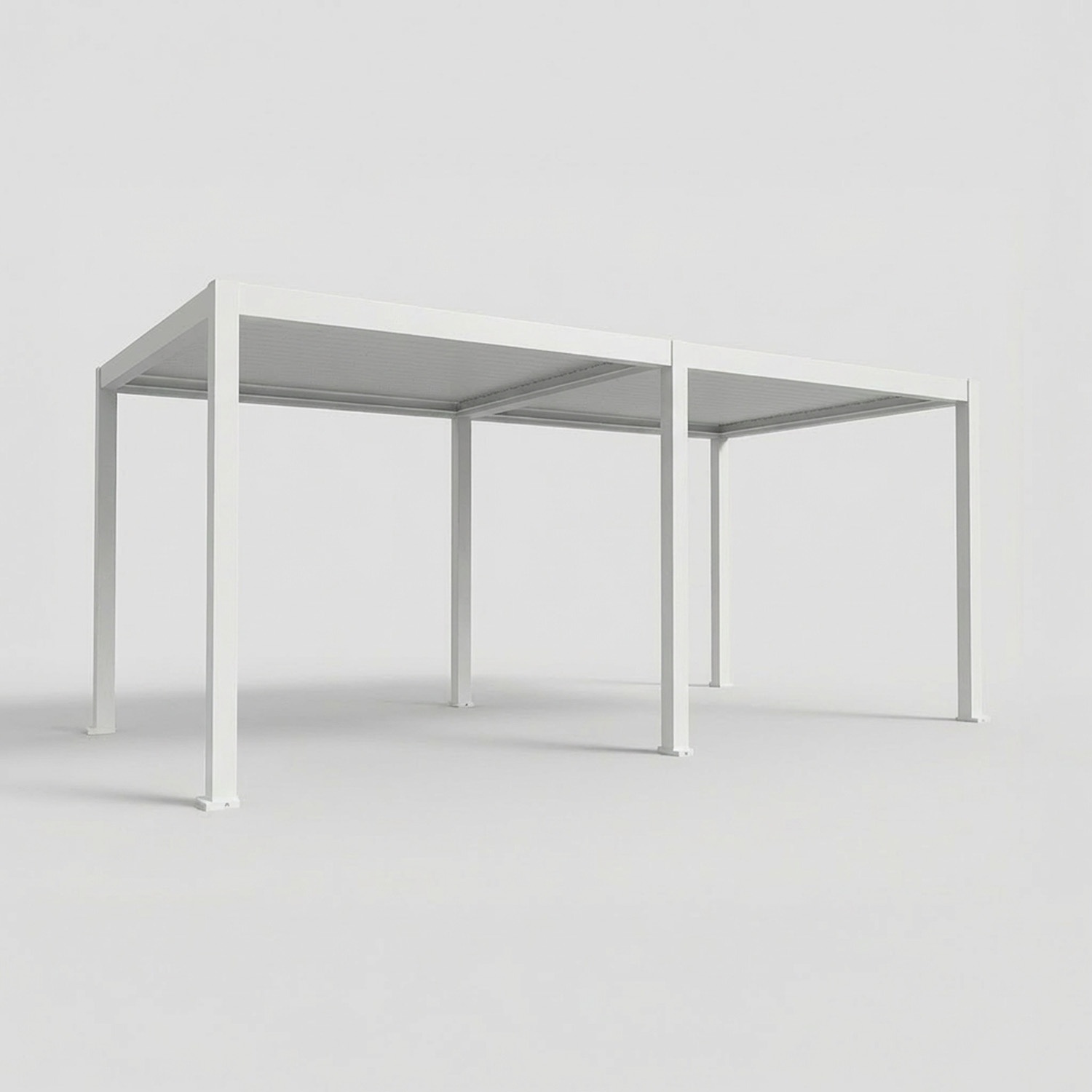 Pali 120×120×2 mm a doppio canale, travi 160×95×1.7 mm con grondaia integrata, lamelle 160×33×1.4 mm. Tutto in alluminio 6063-T6 con verniciatura a polvere UV-resistente nella colorazione scelta.