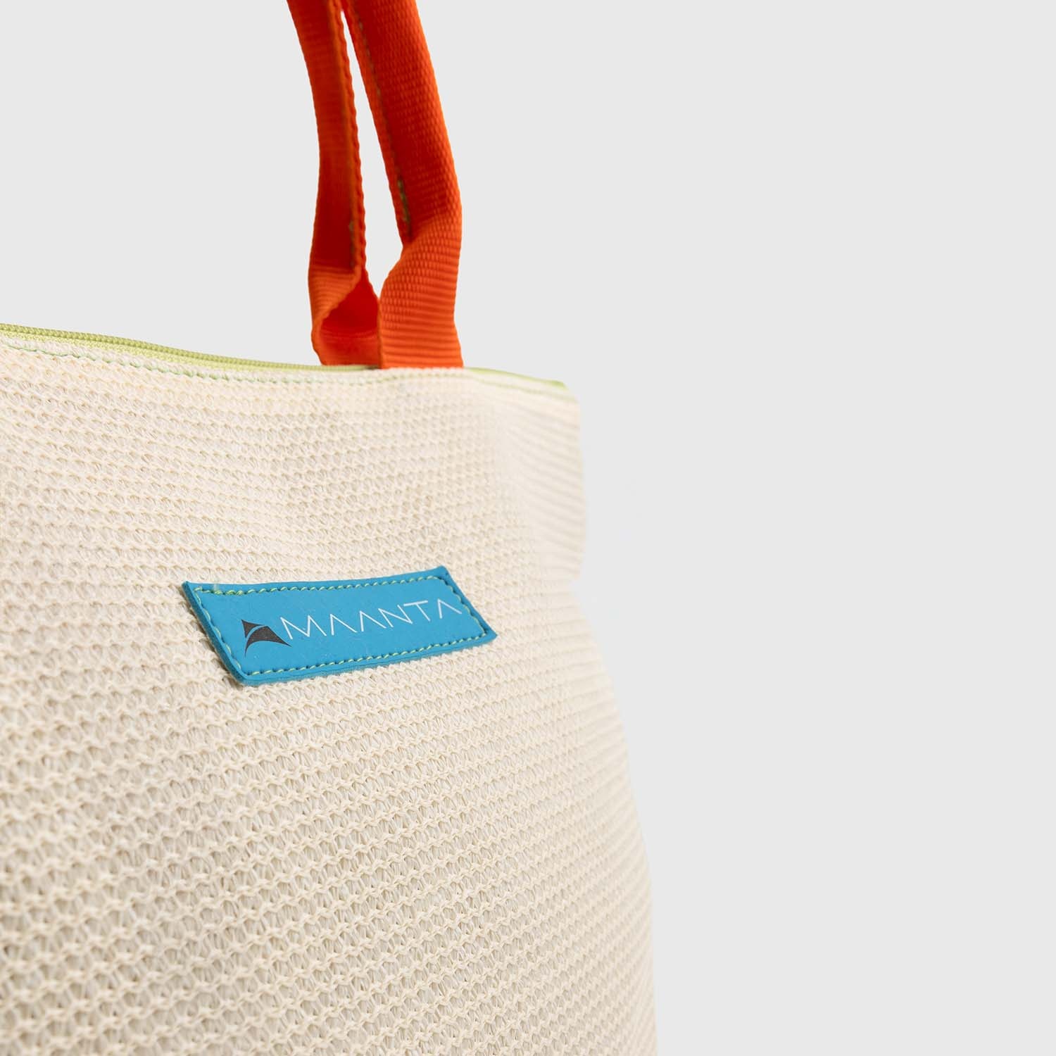 Il tessuto esterno è il nostro Meshnet 320g, un polietilene vergine intrecciato estremamente robusto che utilizziamo per la produzione delle nostre vele artigianali. Selezionato per la perfetta protezione dal calore e resistenza al vento, diventa ora una borsa grande, comoda, morbida con una base resistente per sostenere il peso di una giornata fuori casa e soprattutto perfetta per andare al mare.