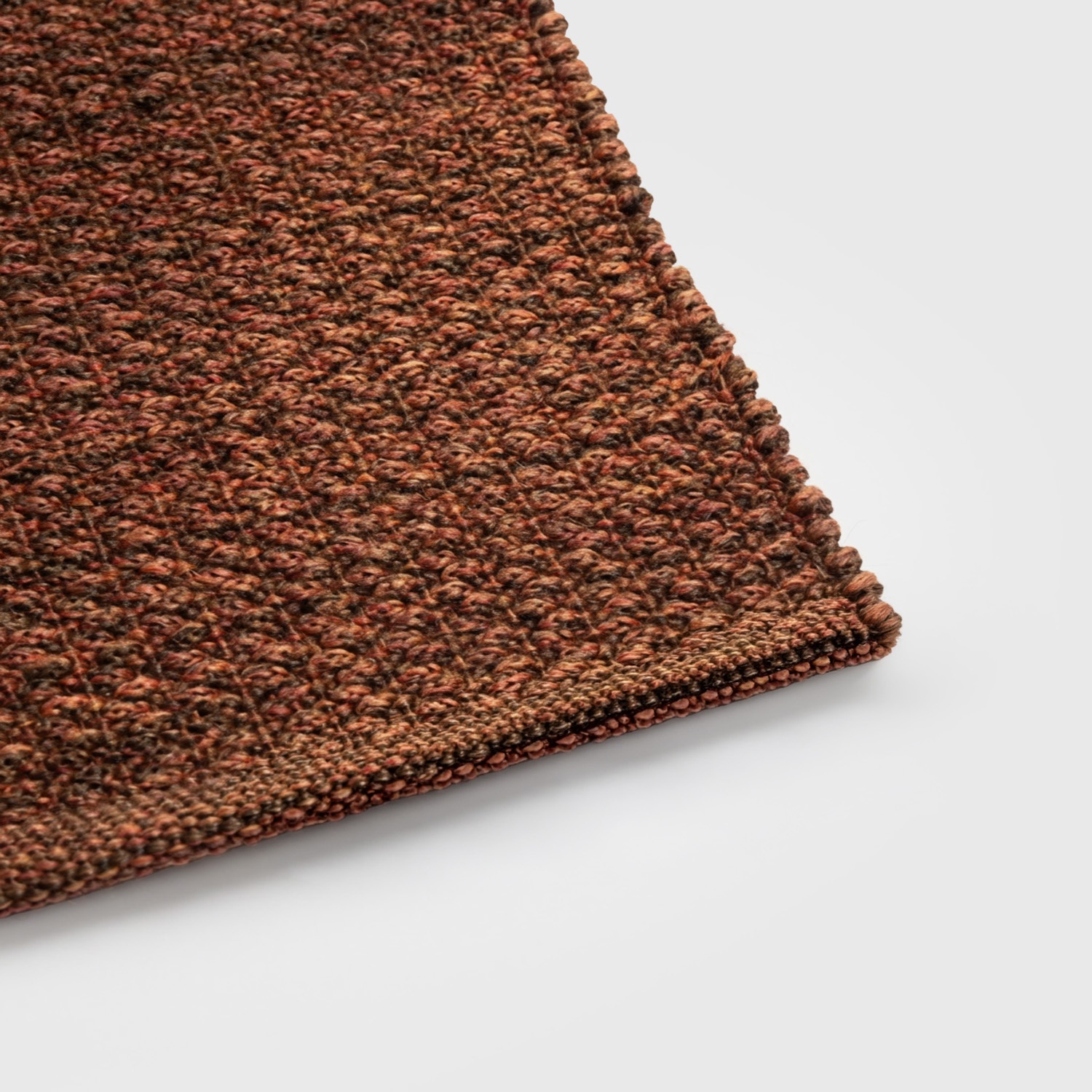 L'intreccio denso (1800 g/m²) conferisce a Tramelia un peso considerevole che lo mantiene stabile sulla maggior parte delle superfici. Su pavimenti molto lisci (gres porcellanato lucido, marmo) consigliamo l'utilizzo di un sottotappeto antiscivolo, acquistabile separatamente.
