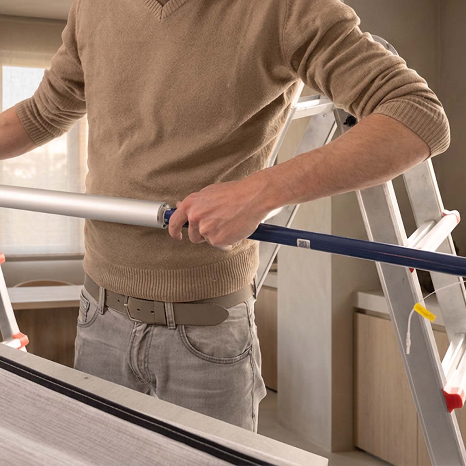 Il motore per le tende a rullo Maanta si installa direttamente sul rullo avvolgitore in pochi minuti, senza elettricista e senza opere murarie.