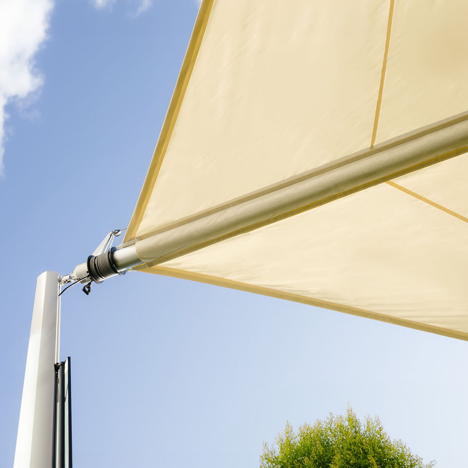 Zefira è progettata per resistere a vento moderato quando è aperta. Quando il sensore vento rileva raffiche oltre la soglia di sicurezza, la vela si avvolge automaticamente per proteggersi. Maanta ha sviluppato questo sistema di protezione automatica per preservare la struttura da danni anche durante temporali improvvisi.