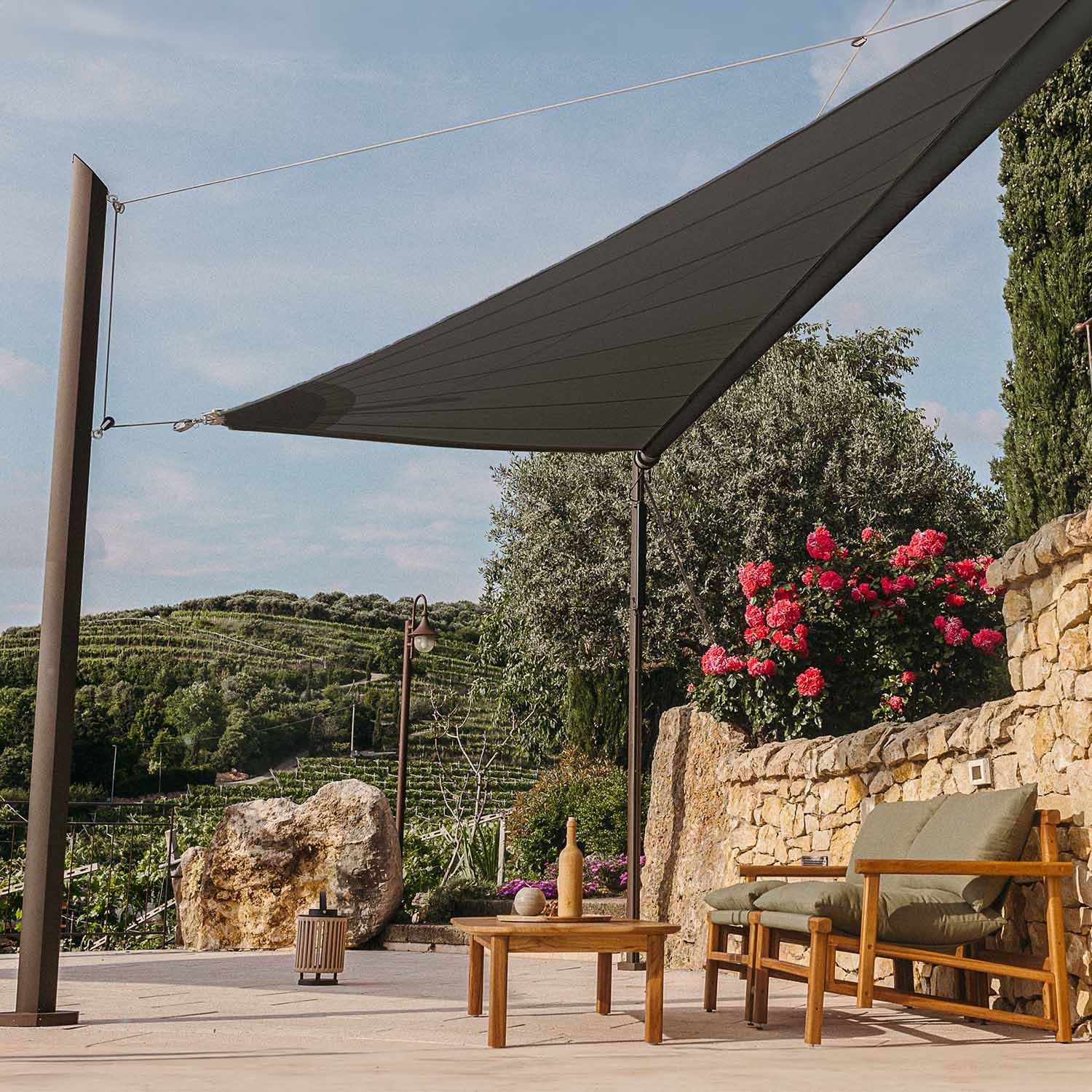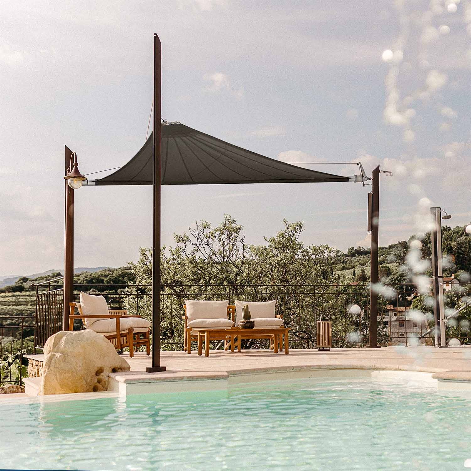Questa tenda a vela avvolgibile motorizzata richiede pali progettati appositamente da Maanta, dotati di piastre specifiche per il suo sistema di aggancio motorizzato. Se hai già altri pali, purtroppo non potrai utilizzarli con Zefira.