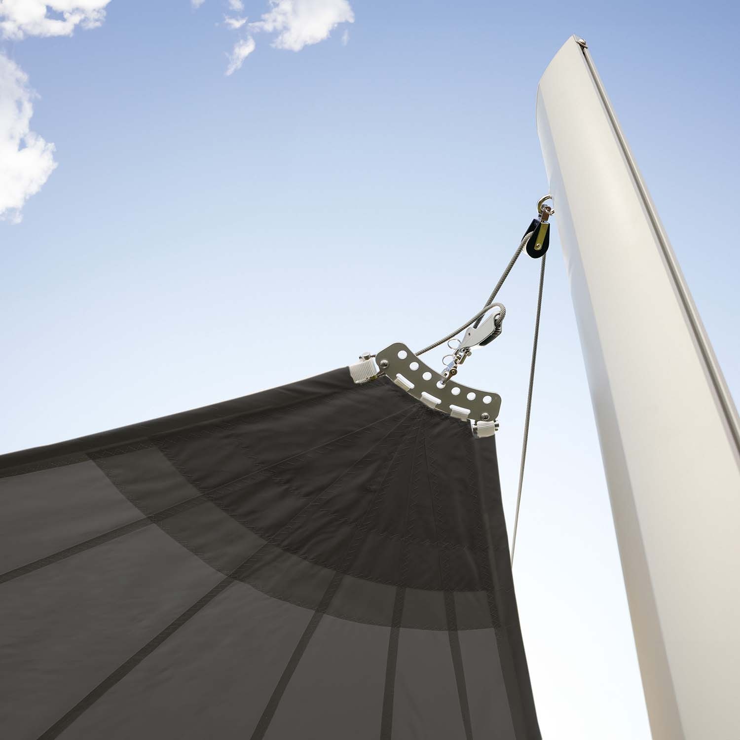 Componenti inclusi Sistema di tensionamento Gruppo molla, Rocchetto avvolgicima, Bozzelli su angoli vela, Cima di tensionamento, Staffa a sbalzo